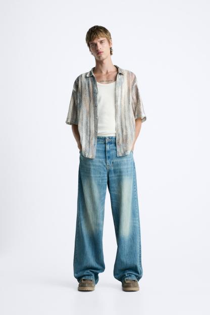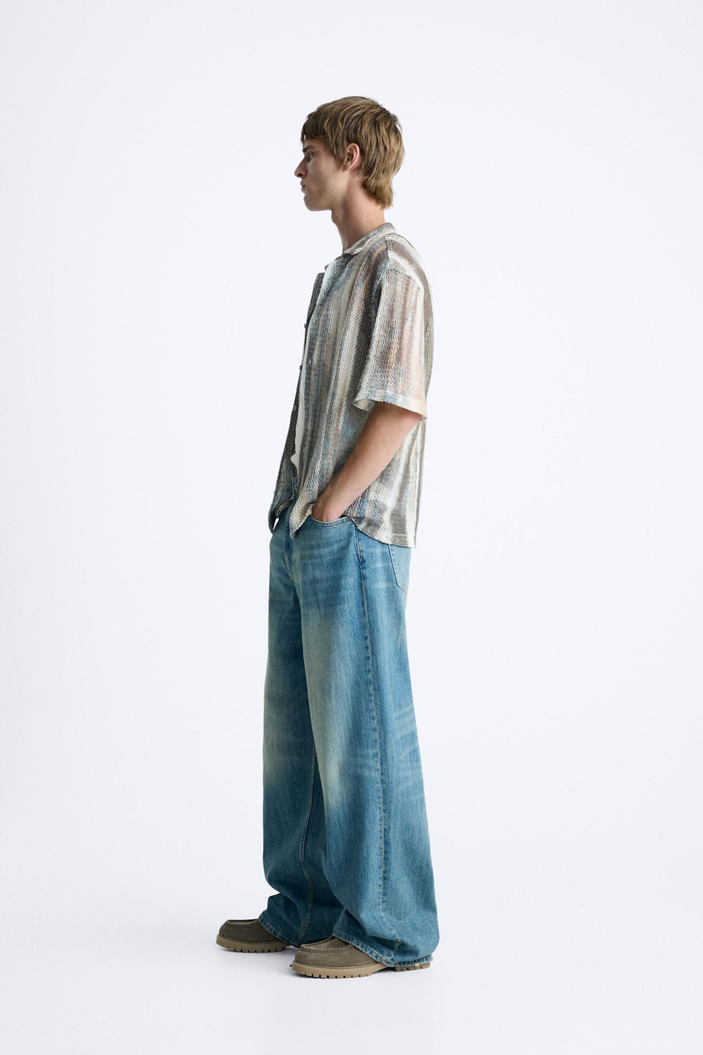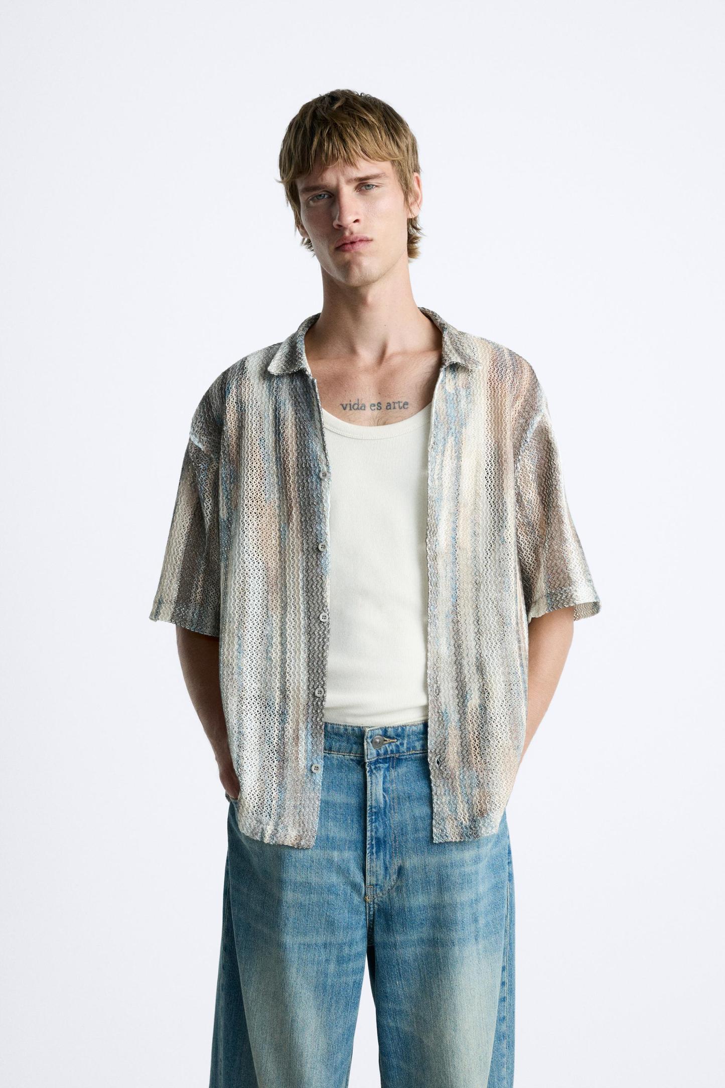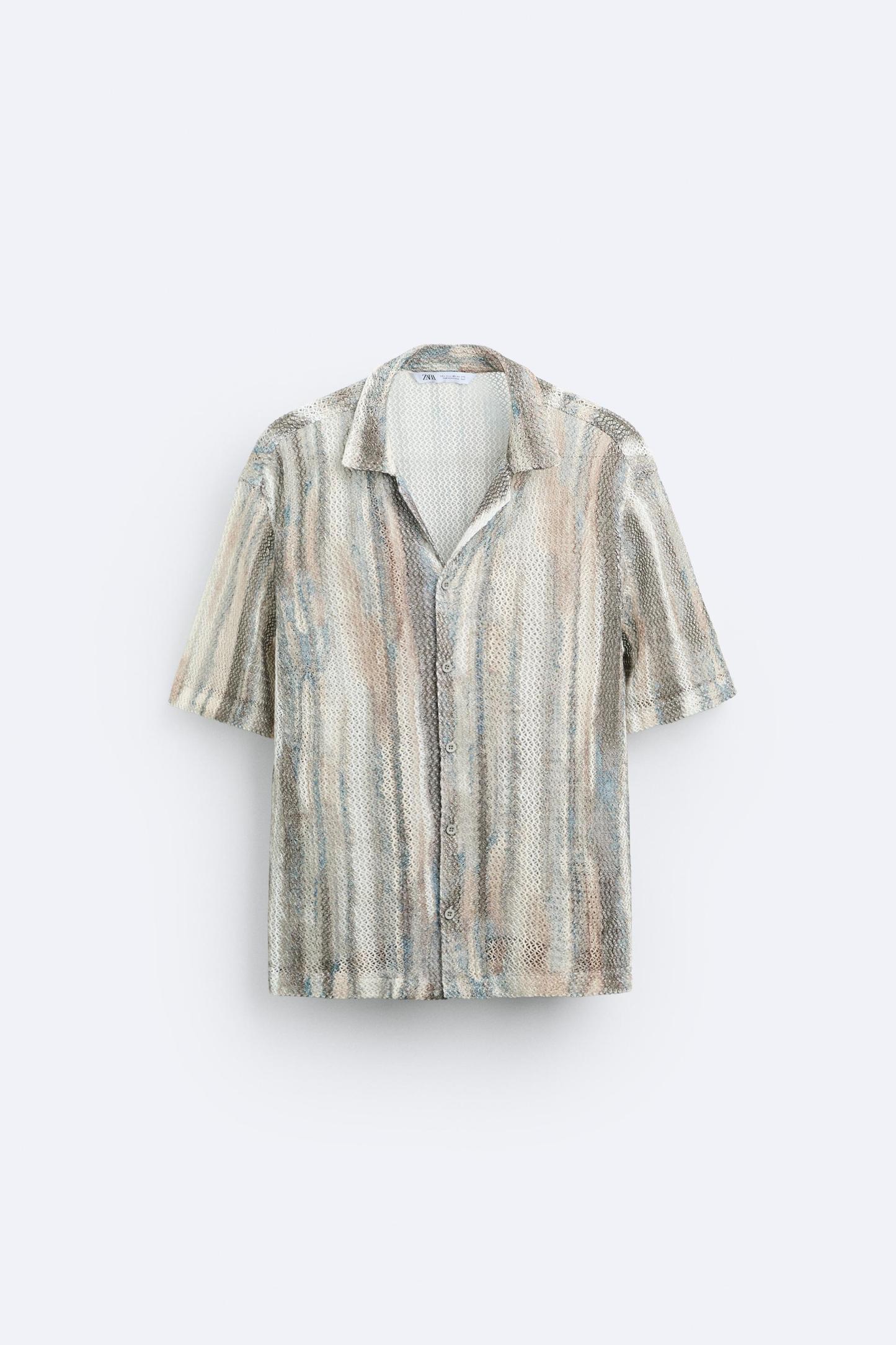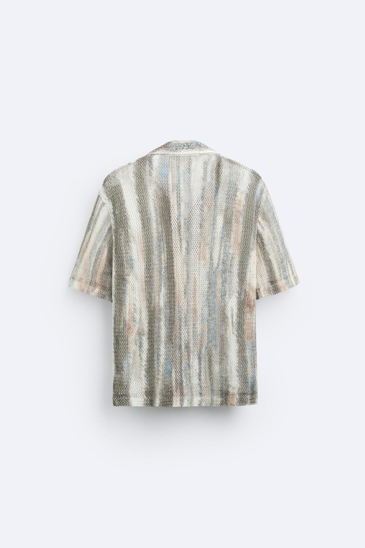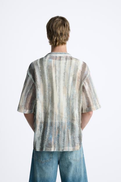 ABSTRACT PRINT OPEN WORK SHIRT